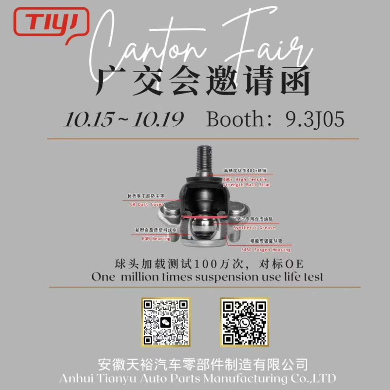 হ্যালো সবাই! অক্টোবর 15 থেকে 19 অক্টোবর Canton Fair Tianyu বুথ 9.3J05 আপনার দর্শনের জন্য উন্মুখ